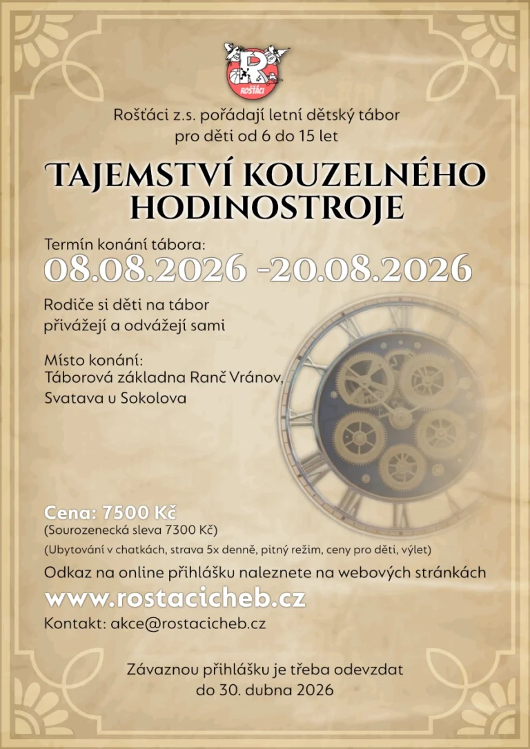 akce@rostacicheb.cz ,nebo telefonicky u hlavního vedoucího, Petra Hasoňe, na telefonním čísle +420 737 054 993